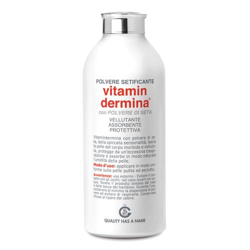 POLVERE SETIFICANTE vitamin dermina con POLVERE DI SETA VELLUTANTE ASSORBENTE PROTETTIVA Lascia la pelle del corpo morbida e vellutata, protegge da un'eccessiva traspirazione e assorbe in modo naturale l'umidità della pelle. Modalità d'utilizzo Applicare in modo uniforme sulla pelle pulita ed asciutta. Avvertenze Uso esterno. Evitare il contatto con gli occhi. Nel caso lavarli con acqua. Tenere il prodotto lontano dal naso e dalla bocca del bambino. Durante l'uso, contenere al minimo la dispersione di polvere e di respirarla. Conservazione Conservare chiuso al riparo dal calore. Formato Flacone da 100 g Cod...