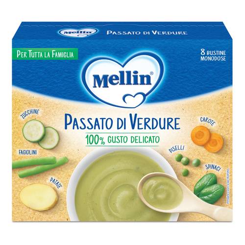 Passato di VerdureBUSTINE indicato per tutte le età. Modalità d'uso: è di facile e rapida preparazione: è sufficiente riempire un pentolino con 180-200 ml di acqua, versarvi una bustina e portare ad ebollizione, mescolando di quando in quando. - Per la preparazione di creme e pappe: dopo aver preparato il passato, versare lentamente a pioggia la crema di cereali, aggiungere un omogeneizzato di carne, pesce o il formaggino e mescolare bene. Condire con olio extravergine di oliva e parmigiano grattugiato. - Per la preparazione di minestre: quando il passato di verdure raggiunge l’ebollizione, aggiungere direttamente la pasta, mescol...